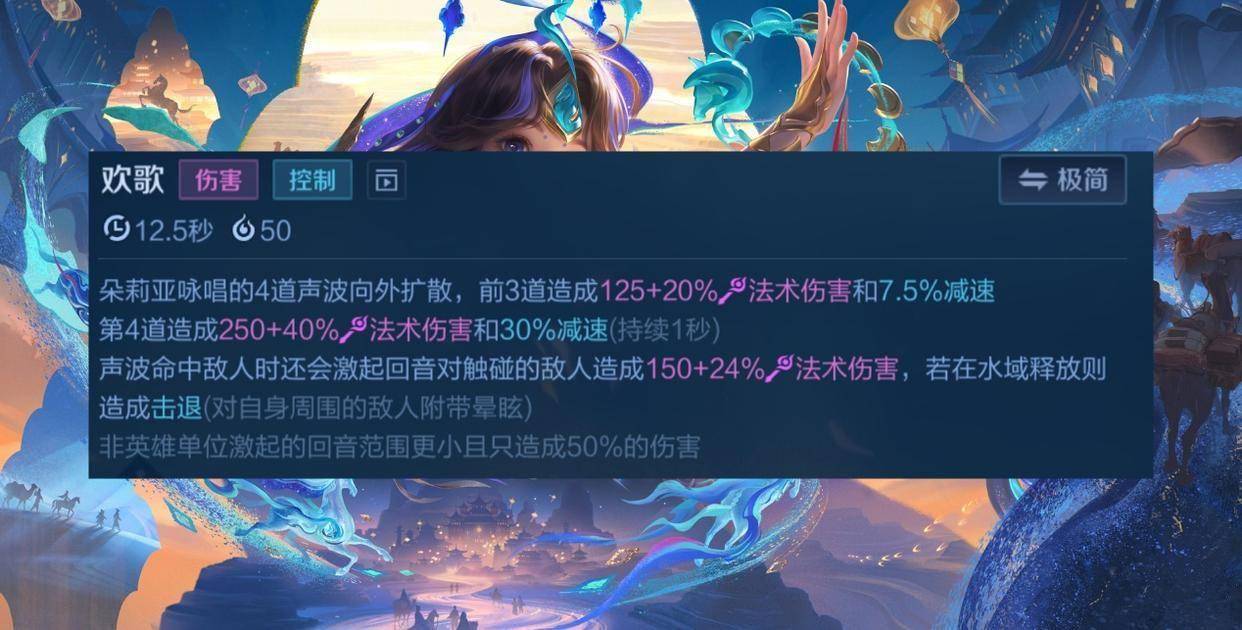 大招是朵莉亚的核心,也是三个技能里面操作最简单的,我们开局搞清楚这局跟谁配合,把被动给上,等他打架的时候用完核心技能,我们给一个大招就行了,非常简单。
