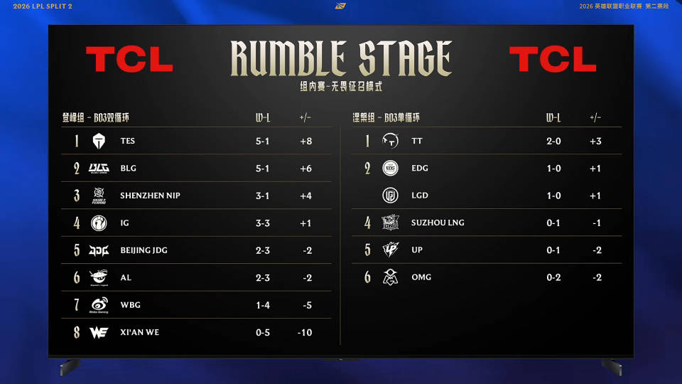 英雄联盟2026第二赛段,全新的赛季却没想到直接把LPL和LCK都给困迷糊了,因为谁也不知道最后的结果会是什么!先谈LCK这边,KT直接逆袭6-0的开局,谁能想到这个队伍,他们去年的联赛唯唯诺诺,凭借一次战胜GEN后拿到名额,前往世界赛之后一路到决赛!可如今回到LCK也该重新洗牌,但KT一路长虹,HLE状态也很不错,而T1、GEN、DK则是有点在中坚力量里神仙打架,谁也猜不准MSI的名额究竟是谁!反观LPL这边也是如此,虽然BLG统治力一直都在,也还是那个大王,但是LPL目前却是由TES领跑!