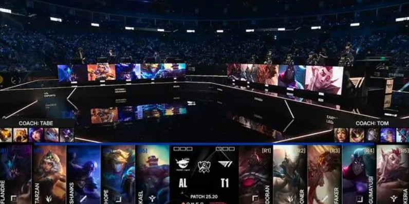 2025英雄联盟全球总决赛四分之一决赛,T1 3-2击败AL晋级四强!第一局AL:雷克塞、奇亚娜、瑞兹、EZ、布隆T1:赛恩、潘森、岩雀、韦鲁斯、洛两队前期常规对线,AL先动换线控下三条巢