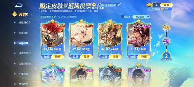王者荣耀十周年投票返场活动正式结束,36款皮肤中有6款脱颖而出,并将在10月25日正式返场。我们来看看最终排名: