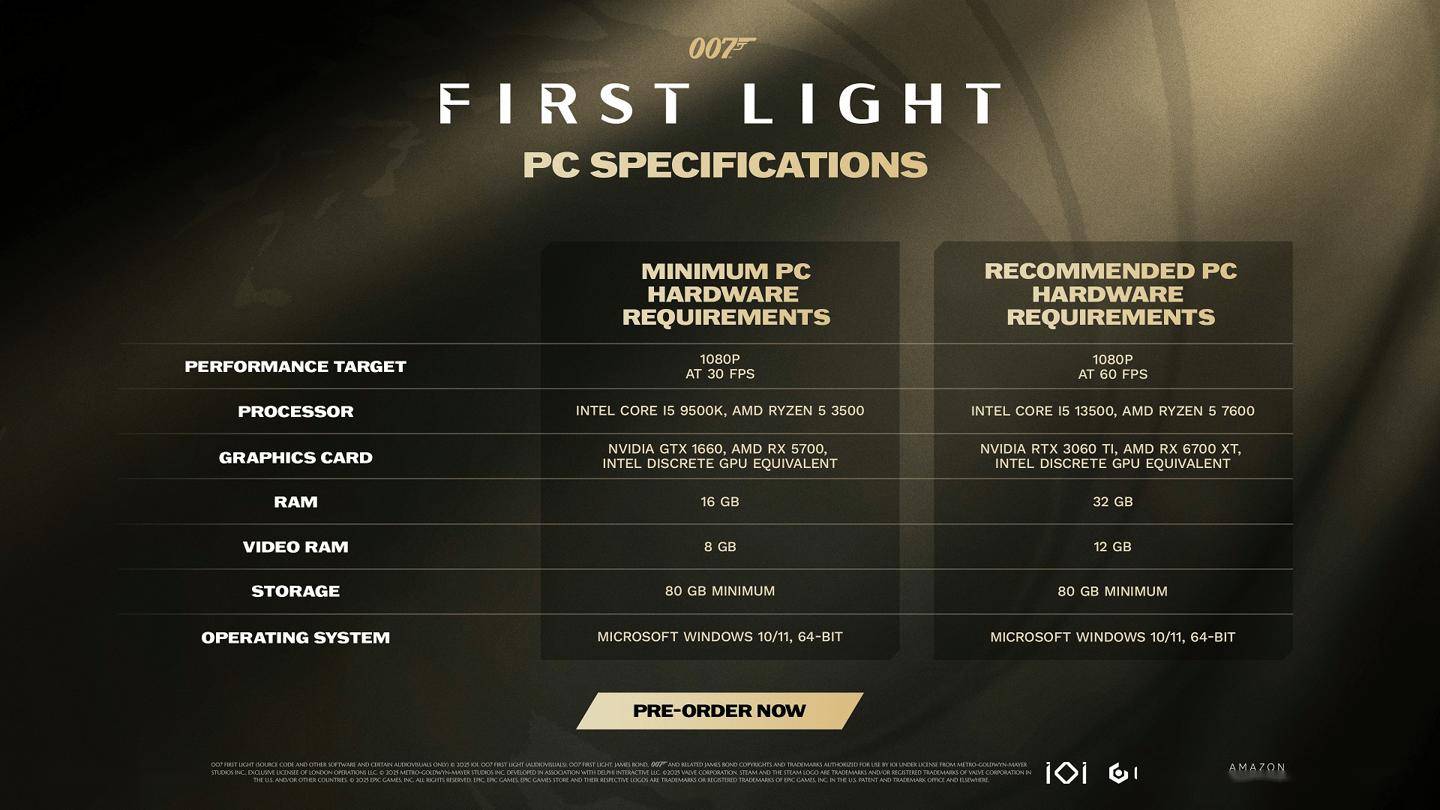 《007:初露锋芒》将于今年晚些时候推出。随着发售临近,官方今天首次披露了 PC 硬件配置信息,并确认英伟达作为技术合作伙伴参与项目。