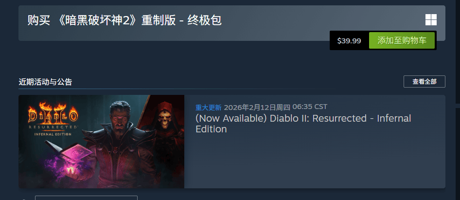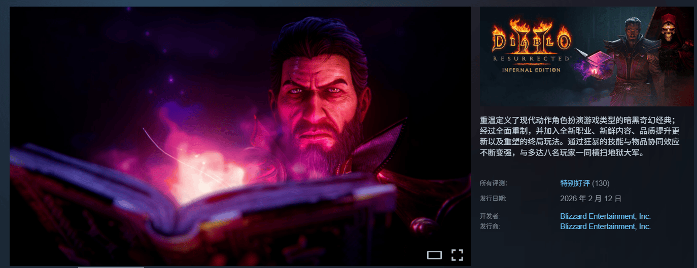 《暗黑破坏神2重制版》新资料片“术士君临”于2月12日官宣并上架,暴雪同期发布了游戏的Steam版,可惜目前是锁区的,并没有国区,也没有简体中文(有繁体中文)。