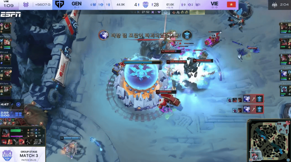 这或许就是超威和尺帝的重要性吧,在对阵越南队的那场比赛,GEN直接被对手打成了人机,Kiin上路兰博打奎桑提被对线单杀,简简单单!而在打野对位里,Canyon拿出奇亚娜打剑魔,对面越南队打野剑魔直接超神了!只能说这个GEN的上野辅,也就是那样了,虽然说双C是青训选手,但也不至于这么拉,上野没有一个人能站出来!当然这一切都是浮云,等联赛来了,又是Chovy的天下了!