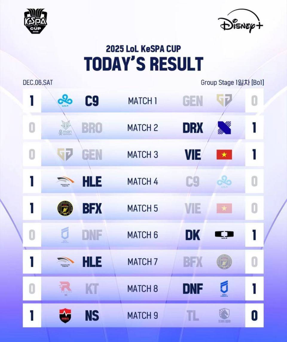 在首日小组赛对决里,HLE拿下了两连胜先后战胜C9和BFX,队伍新阵容磨合的还不错,尤其是Kanavi的发挥,回归到LCK并没有让他不适应,还是一如既往的野核进攻体系,确实是把中路Zeka的强度拉上去,还是有效果的!而有Scout加入的NS,他们也如愿拿到首胜,战胜了北美的TL!然而第一天的倒霉蛋就是GEN了,此次K杯队伍两个大哥Chovy和Ruler缺阵(据说去短暂的忠诚了),而派出了两个青训队员,由Kiin和Canyon、Duro带队,没想到无双C阵容先后不敌C9和越南队,也太离谱了!