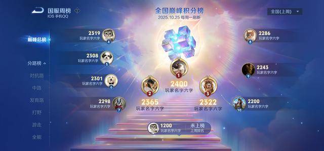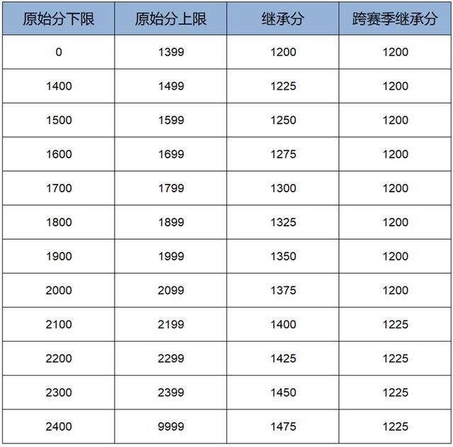 五路巅峰积分合并,巅峰分路匹配改回自主选择,巅峰总榜回归,总榜前100可获得证书、边框、徽章等,巅峰分路榜依然保留(取场次超50%的分路)。巅峰分继承规则如下: