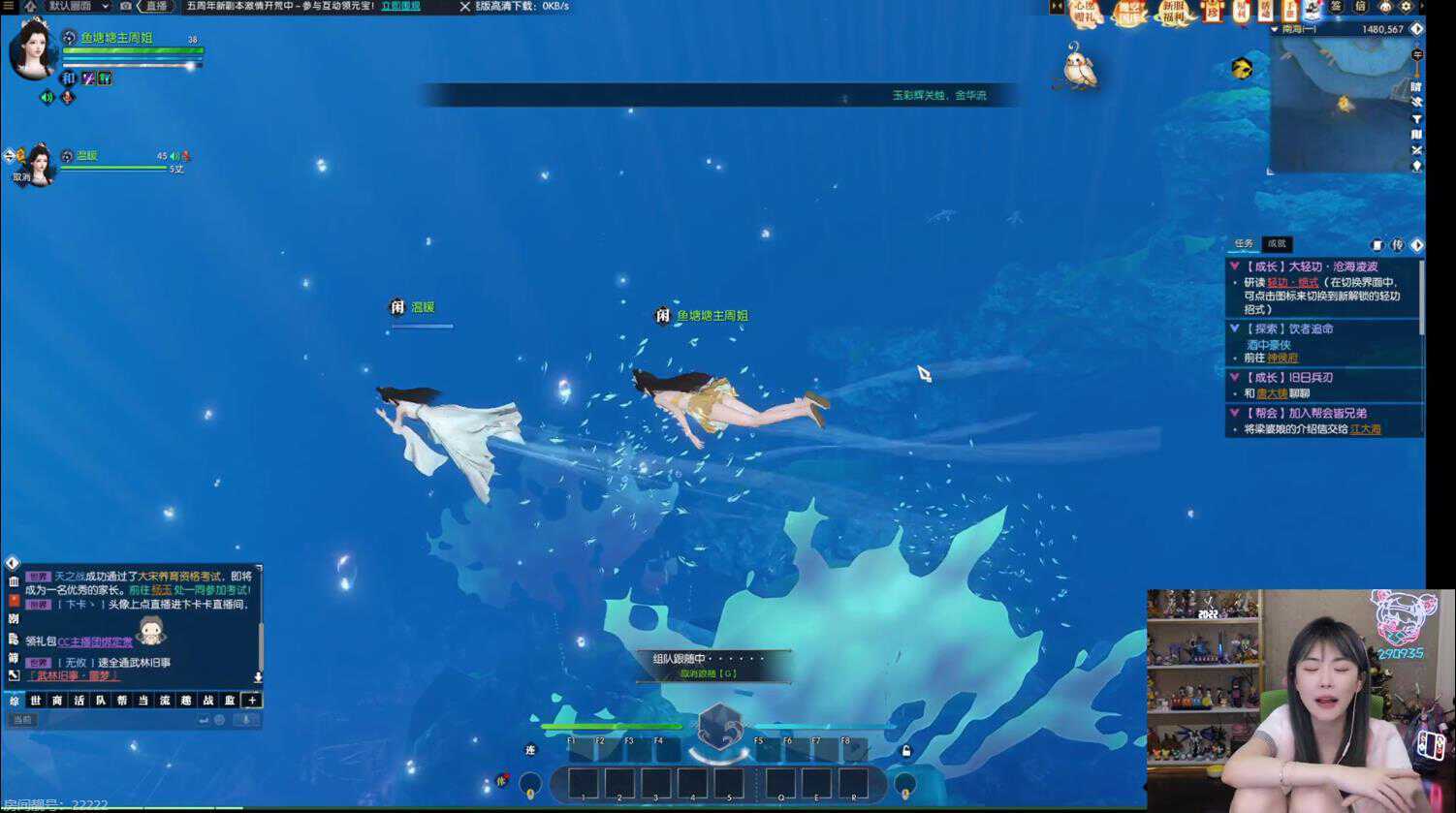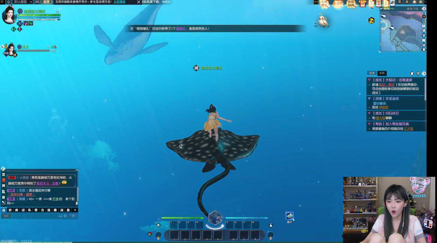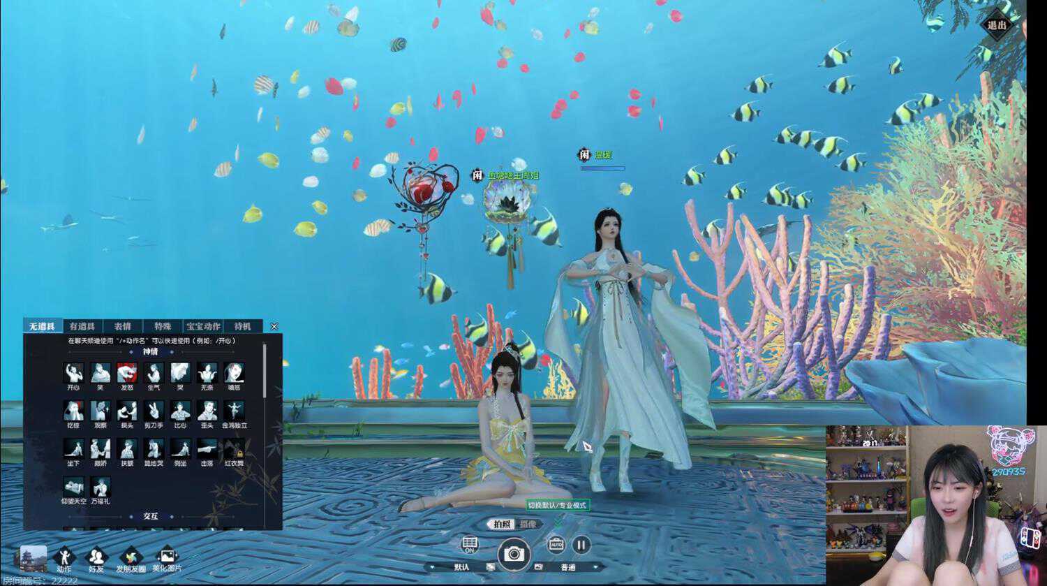 在选好了外观时装后,周淑怡也是喊来了小姐妹一同逛起了全新的水下地图,上来就感叹自己仿佛进入了“龙宫仙境”,直接开启了合影模式。