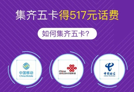 据介绍,从5月8日开始,扫描中国移动、中国联通和中国电信任一品牌Logo标识即有机会获取卡,每一张卡都有一次抽奖机会,集齐五卡可得517元话费哦。