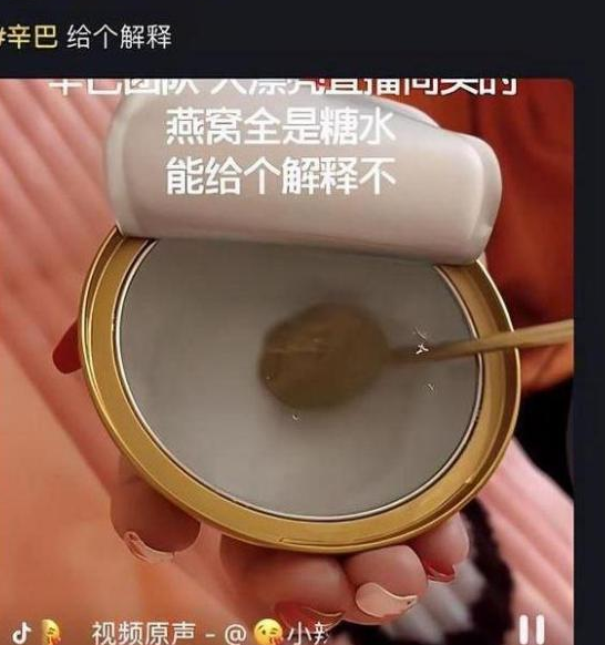 今年10月25日,辛巴团队的主播“时大漂亮”在直播时向粉丝推荐了一款燕窝产品,品牌为茗挚。2020年11月4日,有消费者质疑辛巴徒弟“时大漂亮”在直播间售卖的即食燕窝“是糖水而非燕窝”,并发出视频,要求辛巴团队给出合理的解释。