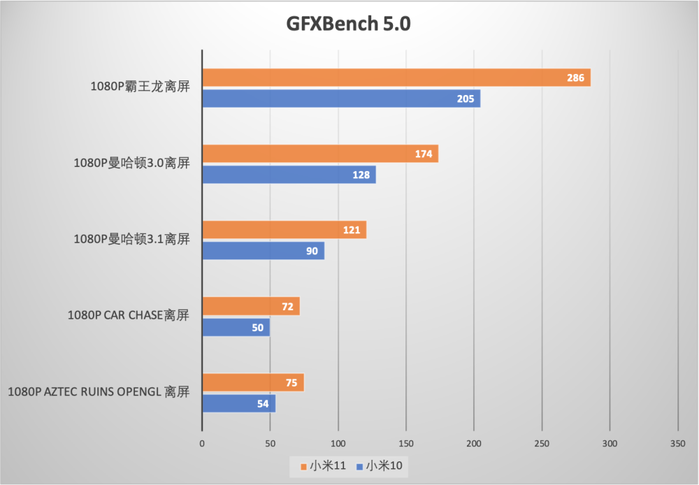 而在实际的测试中,GFXBench的各项数据上,骁龙888的Adreno 660都确实要大幅度领先骁龙865的Adreno 650,具体的跑分成绩也大部分都符合35%这个官方给出的性能提升预期。