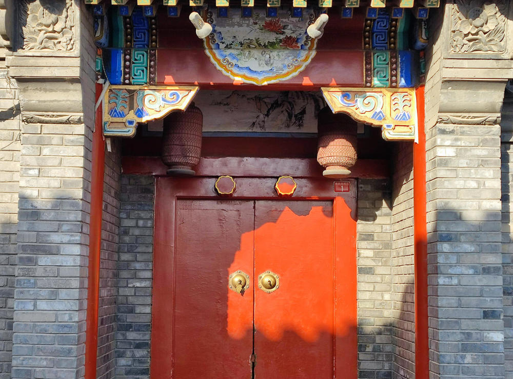 顺光的情况下,高曝光的部分对于光线的处理很到位,没有出现为了提升暗部细节而导致亮部过曝的情况,胡同大门上梁的装饰色还原的很真实,同时上面背阴的细节也被完整的保留下来。