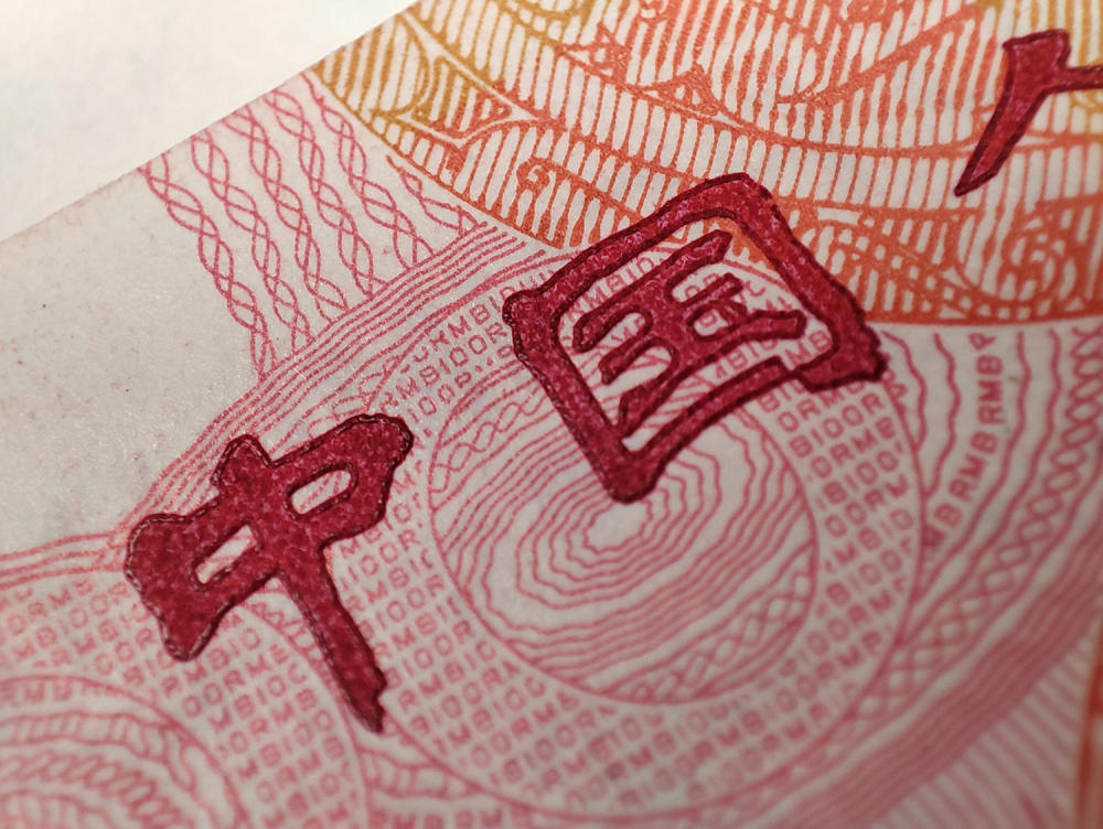 比如100元人民币上中国两个字的凸起质感。