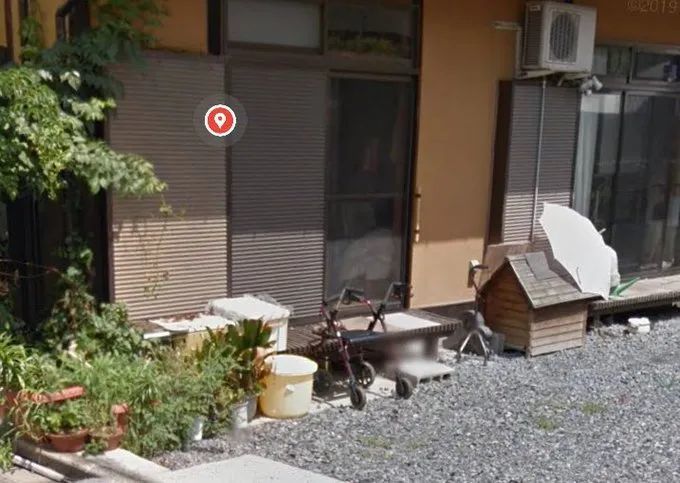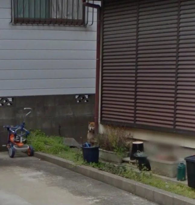 还有人在自己家的墙角,看见了两年前去世的狗狗,它正躲在角落暗中观察,没想到这一幕被谷歌街景记录了下来。