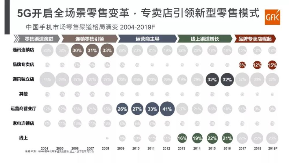 市场研究公司GfK将2010年至2015年的线上渠道销量做了对比,结果表明线上渠道的爆发期已经结束,红利也已逐渐消失。如今,专卖店风头正盛,引领新型零售模式。