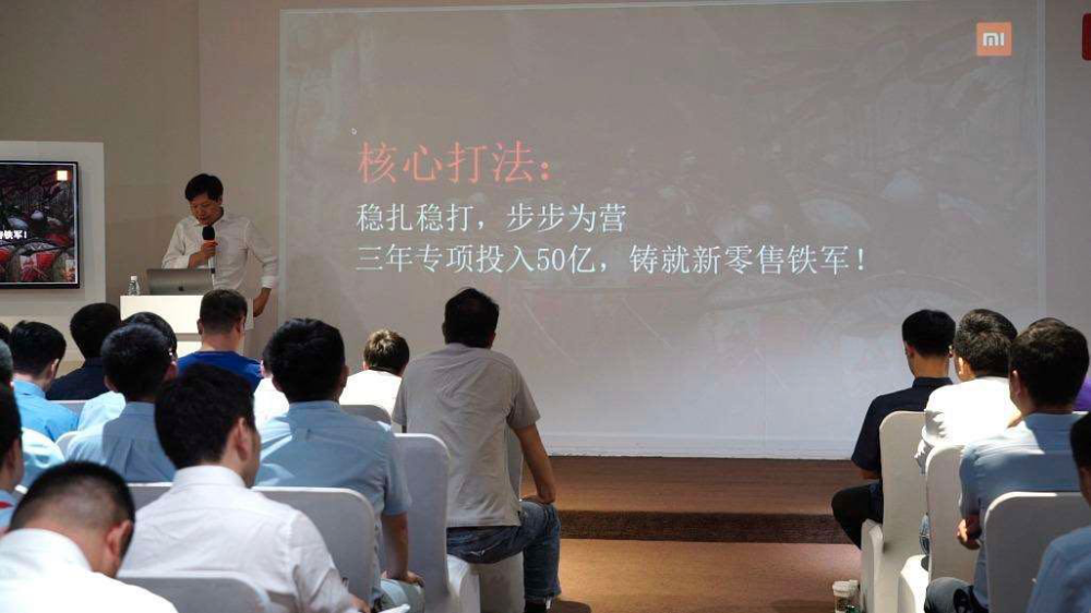 “618”当日,雷军与小米中国区团队举办了一场闭门干部动员会,对线下渠道提出的要求是:稳打稳扎,步步为营。并称将会在新零售建设方面追加投入50亿元。