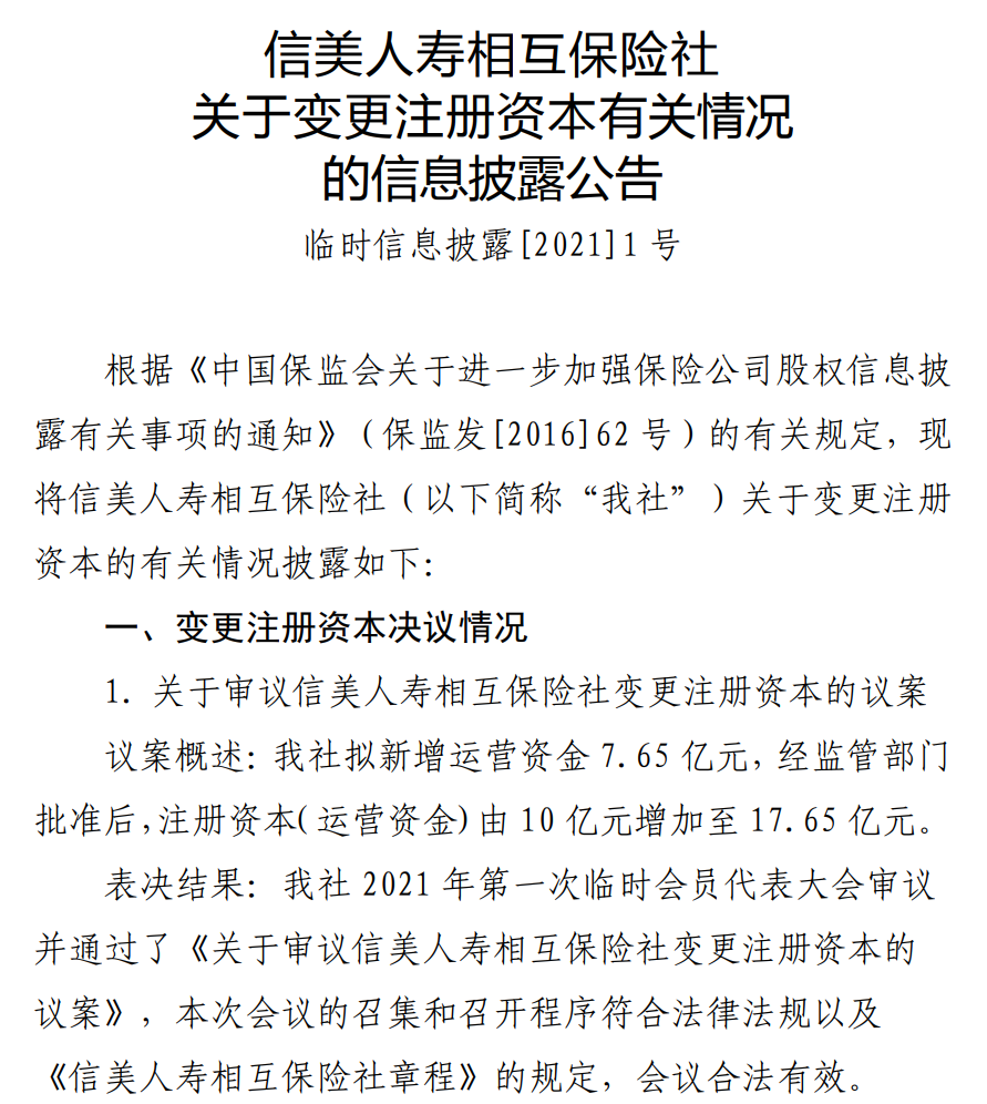 3月26日,信美人寿相互保险社(下称信美)发布增资公告,注册资本拟从10亿增至17.65亿。此次增资,将引入新浪系公司微梦,微梦将成为第一大出资人,将对信美出资5.85亿,出资比例达到33.14%。