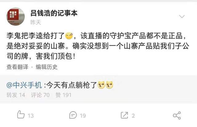 中兴通讯终端事务部市场战略部总经理吕钱浩解释,李鬼把李逵给打了,该直播的守护宝产品都不是正品,是绝对妥妥的山寨。“确实没想到一个山寨产品贴我们子公司的牌,害我们顶包!”