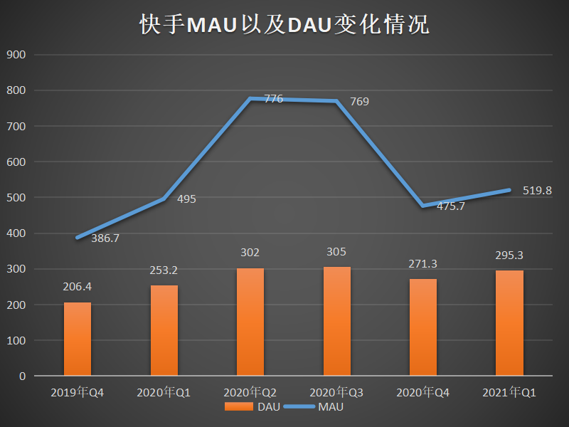 财报数据显示,今年一季度,快手迎来年内最大单季用户增长。平均日活用户达到2.953亿,同比增长16.63%,环比增长8.85%;月活用户为5.198亿,同比增长5.01%,环比增长9.27%。