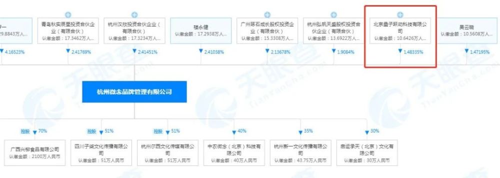 李子柒签约的公司是“杭州微念品牌管理有限公司”(下称“微念公司”),是一家通过孵化与深度整合KOL网络、跨界新消费品牌的公司,主营业务是售卖食品和广告,当前拥有香喷喷的小烤鸡、仲尼、夏一味、卧蚕阿姨、子望等数十位头部KOL和多个新消费品牌,李子柒可谓其中的“当家花旦”。