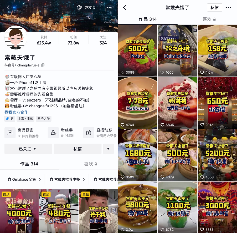 丰富多元的探店场景可以带给观众不同的新鲜感,但对于达人来说却是一项挑战,因此抖音上也出现了专注一个热门城市的探店达人群体。