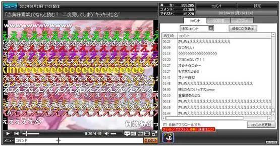 Niconico动画早期弹幕截图,右侧为弹幕历史记录
