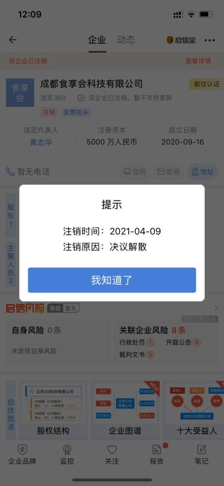 记者查阅启信宝发现,截至目前,食享会旗下成都、宁波、江西、邯郸、合肥、南京、台州、泰州、杭州、西安等15家分公司均已显示“注销”。