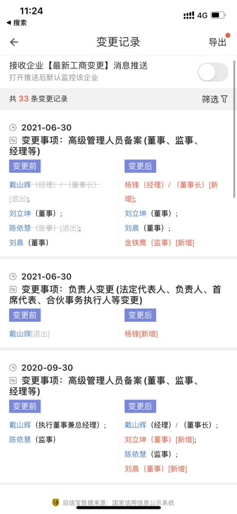 启信宝显示,2021年6月30日,食享会创始人戴山辉不再担任食享会的运营公司、武汉七种美味科技有限公司董事长、经理职务,由杨锋接任。监事陈依慧也在同日退出,金铁鹰接任。戴山辉为公司大股东,持股近84%。