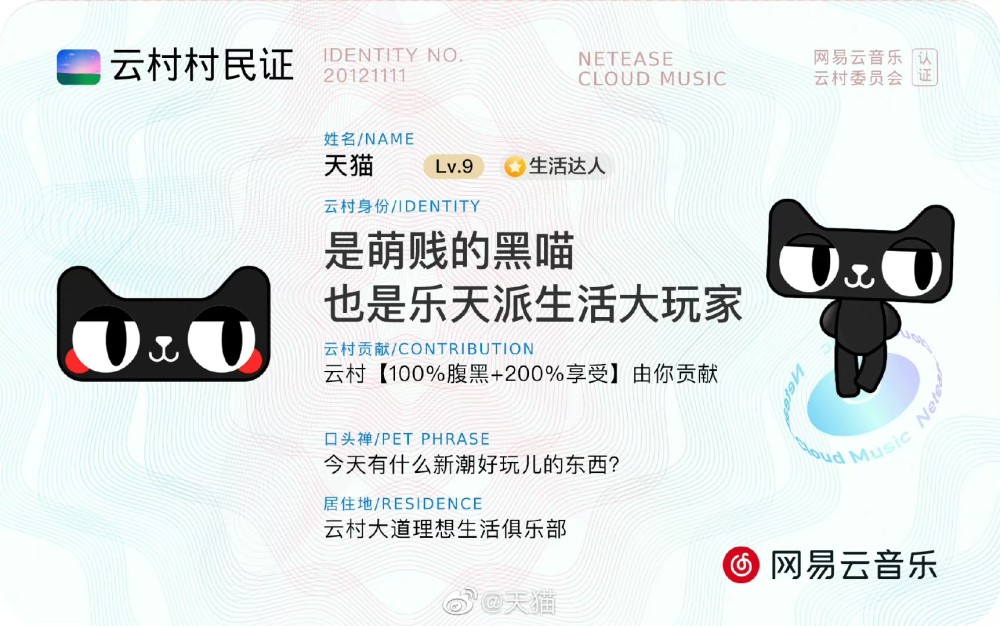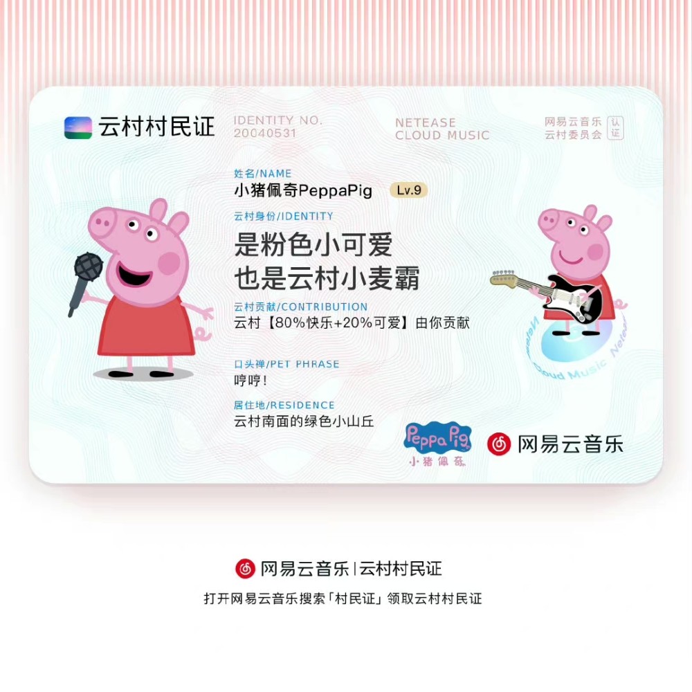 包括淘宝、天猫、必胜客,甚至小猪佩奇在内的官方微博都开始和网易云音乐联动,晒出了自己的“村民证”。