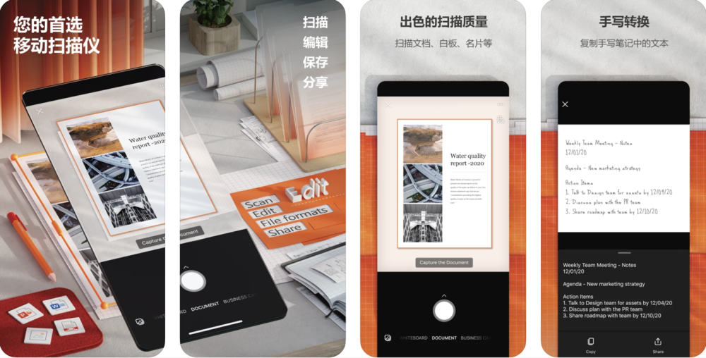Microsoft Lens 可将图像转换为 PDF、Word、PowerPoint 和 Excel 文件,将打印或手写文本数字化,并可保存到 OneNote、OneDrive 或你的本地设备中。还可以使用图库导入你的设备里已有的图像。