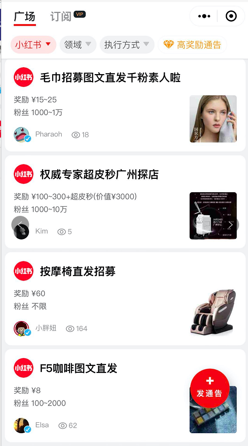 但刘欢有着自己的变现之道,“没有推广找上门,那你就主动去找推广”。刘欢说,她找推广的地方是一款通告小程序,该平台创立之初号称“小红书通告广场”,能帮小红书博主开启粉丝变现。
