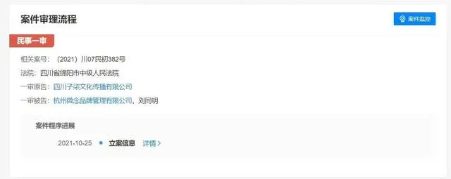 10月26日,有多家媒体爆料,称四川子柒文化传播有限公司于近日起诉mcn机构杭州微念品牌管理有限公司,微念董事长刘同明被列为一审被告,经办法院为四川省绵阳市中级人民法院。