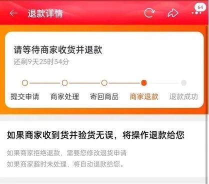 最终,11月1日下午6时许收到货的吴女士选择了退货退款、上门取件,快递小哥拿走退货商品后,退货信息却显示:需等待商家收货并退款时间10天,“以往对于VIP会员,快递收到退货后,退款秒到账。现在可好,付定金下单两分钟,但付尾款、退货等了10天,现在退款还要等十天。”