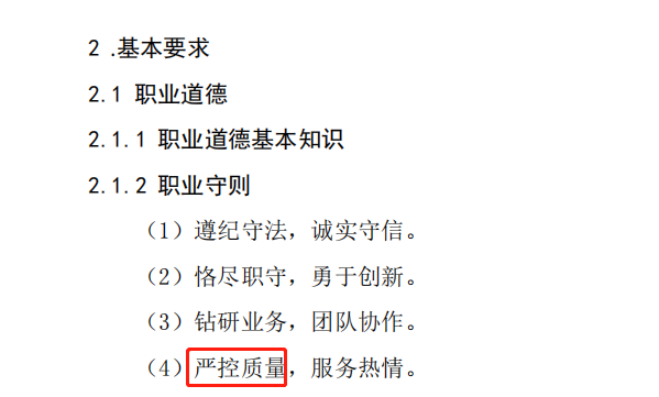 值得关注的是,“严控质量”还被写入了互联网营销师国家职业技能标准的职业守则中。《技能标准》明确规定,互联网营销师的职业守则为:遵纪守法,诚实守信。恪尽职守,勇于创新。钻研业务,团队协作。严控质量,服务热情。