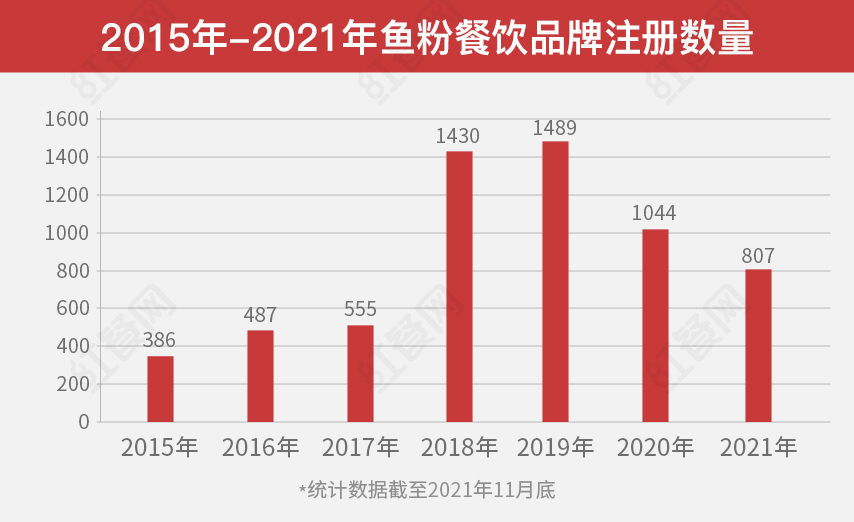 除此之外,鱼粉赛道里新增的品牌也在不断增加。企查查数据显示,2019年至2021年11月底短短三年,鱼粉品类新增的餐饮企业注册数量超过3300家。