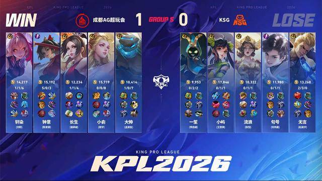 最后一波夏洛特追着关羽跑,正面4打4的团战大帅的鲁班大师先被安琪拉击杀了,关羽绕后又是二技能踩进来,钟馗一钩子钩回关羽,大司命抬手拿下人头。长生的嬴政身陷敌群也走不掉,AG一个一个倒下,KSG扳平比分。