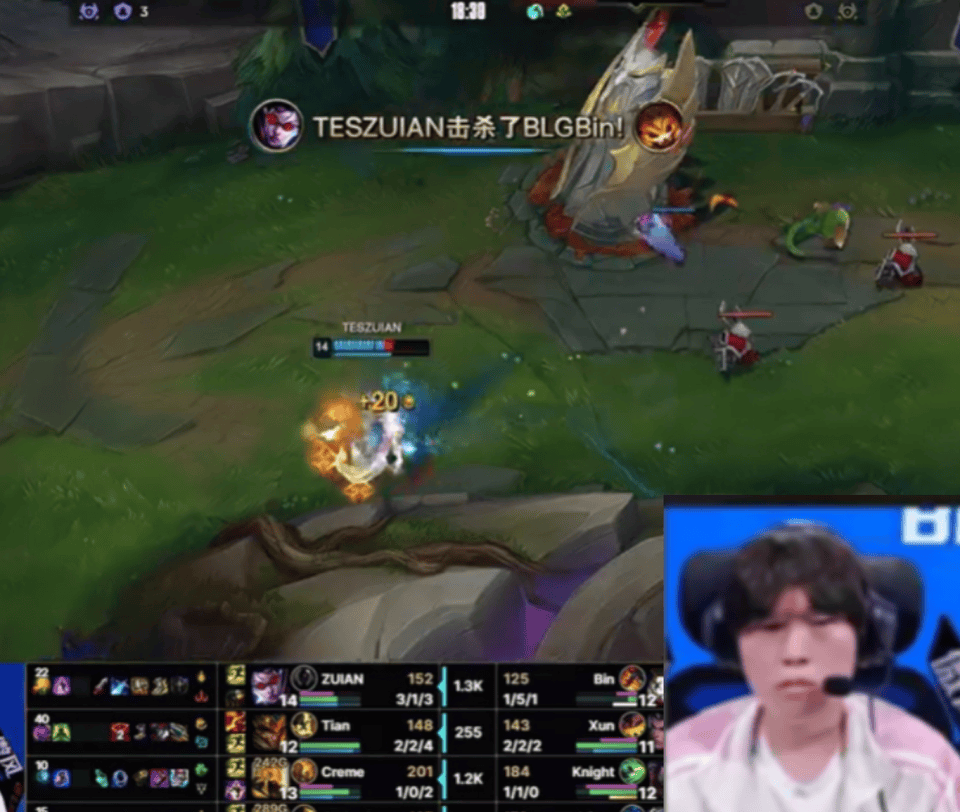 在这场BO3当中,世一上的Bin哥面对TES的新人Zuian,直接被完成单人突破!要知道这个版本本来就是对线版本,在上路对线Bin从来没有输给过任何人,也就只有Xiaoxu偶尔能够打一下,但大部分都是在被抽!可是Bin这次被突破了,尤其是用纳尔打薇恩的时候,一直被追着点,完成单杀突破,把他都给打红温了!不过他的出装其实还是想要去操作的,如果早点出护甲缩着打,可能会好一点!