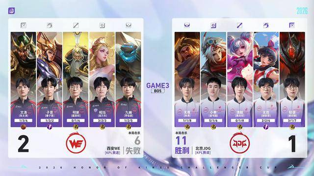 这场比赛JDG边路奶龙首发,前面两局的状态都很一般,第二局奶龙拿出自己的2W战力英雄猪八戒,甚至还被打了个1-6。只能说这种单败淘汰的赛制换人还是挺危险的,尤其是奶龙还是个新人,压力确实大。被WE连赢两局之后,行天换上了轻语,给他拿的还是春季赛只用过一次的白起。