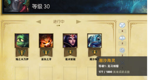 同时在“个人资料”选项卡界面,切换到“进行中”选项卡,从中可以了解当前具有英雄成就点数的英雄以及升级情况,如图所示: