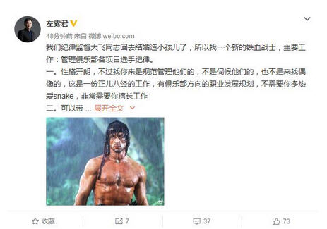 经理左雾昨天晚上发布了一条招聘信息,内容是关于蛇队的纪律监督职务。
