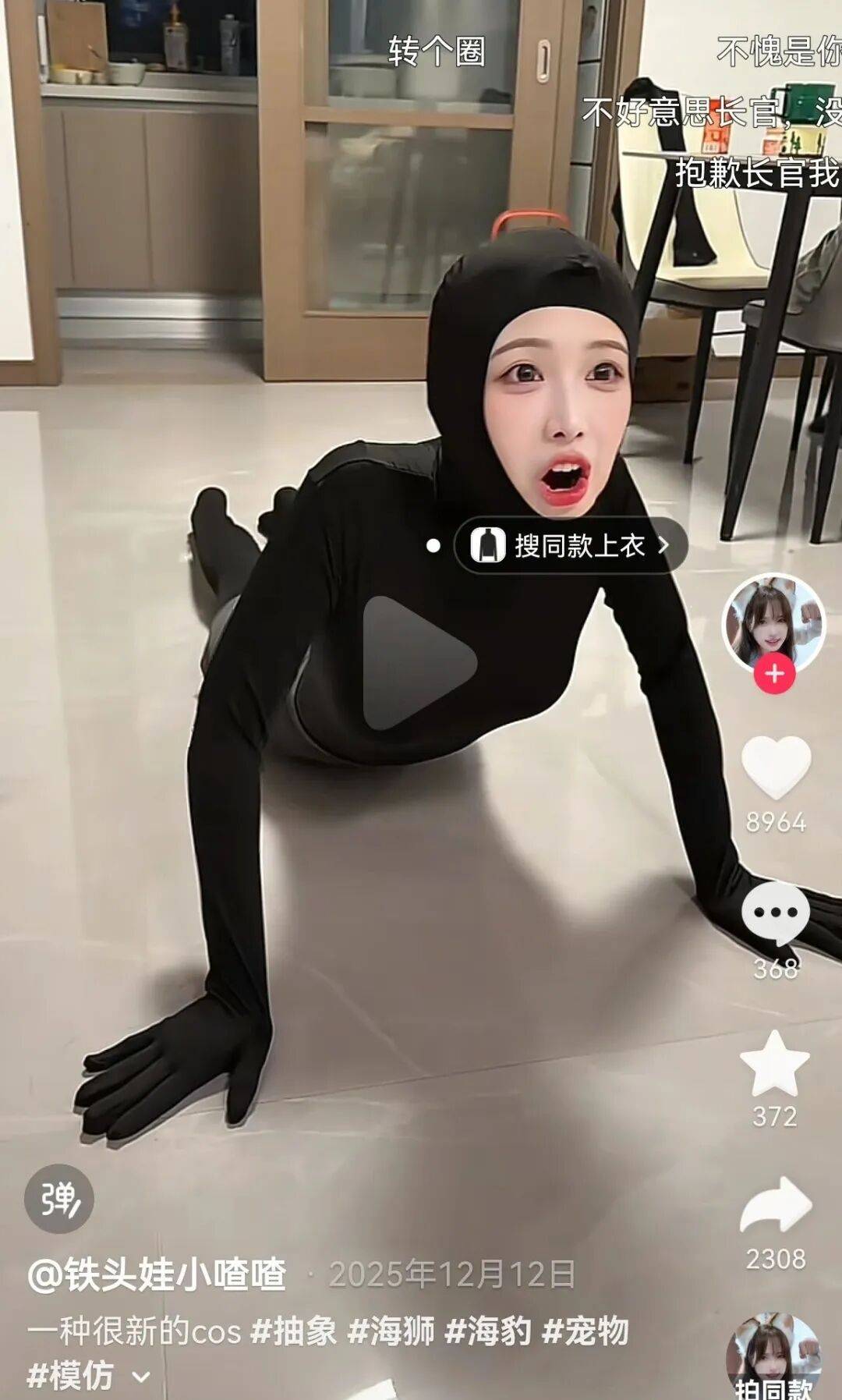 我去翻了她的账号,一打开就被画风惊到了,这姐们是个爱搞抽象的搞笑美女。