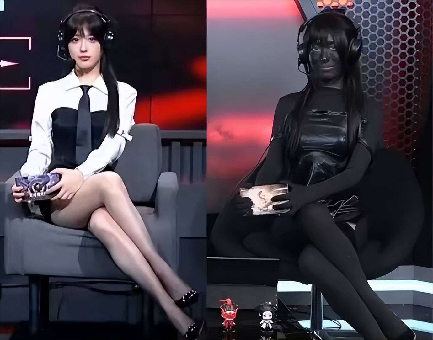 她还拉来男解说做对比:“你们看!旁边的男解说,腿岔得能劈叉,想怎么坐就怎么坐,凭啥女解说就要被束缚?”