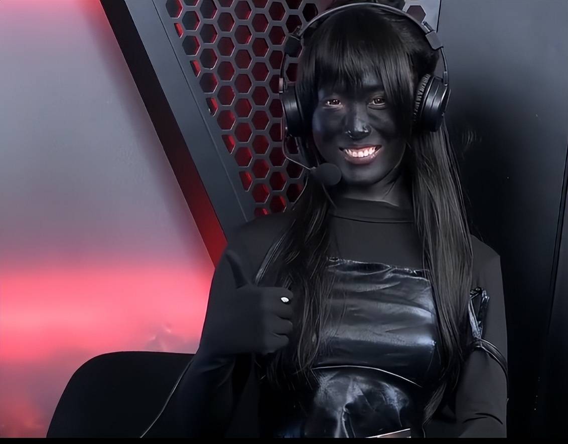 全身黑衣、黑丝袜、黑高跟鞋,连脸上都涂满了黑色的油彩,从头到脚,黑得发亮,黑得彻底,跟原文里的张飞似的,主打一个“你们不是嫌我穿得暴露吗?
