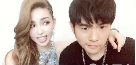 照片中,昆凌身穿亮片吊带裙,披着金黄的时尚卷发,手搭在周杰伦肩膀上,俏皮的吐舌卖萌,一脸崇拜、迷妹眼神的看着老公,而周杰伦歪着嘴巴耍酷,画面非常的温馨。
